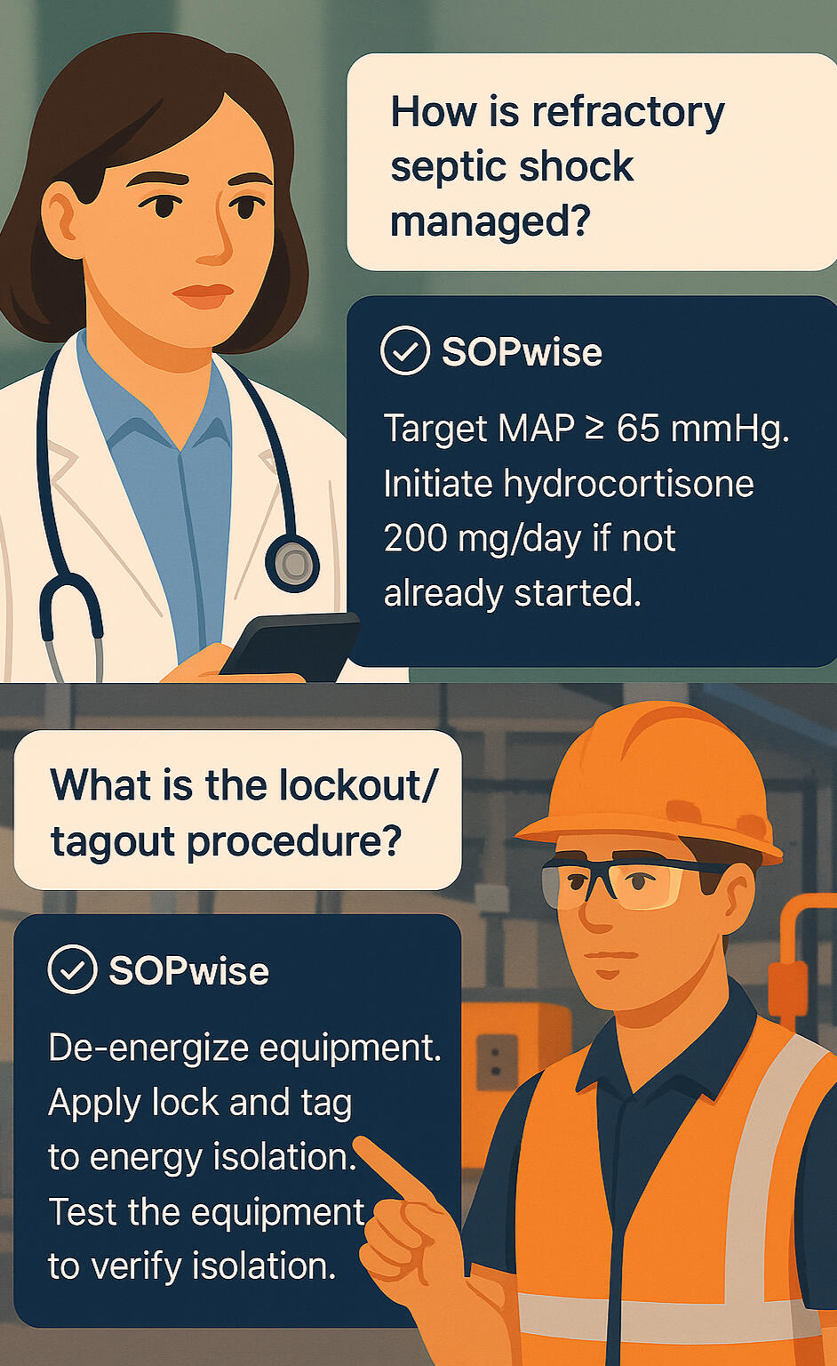 Instantly understand, search, and query your SOPs with AI. SOPwise helps teams in healthcare, manufacturing, labs, and more work safer and smarter.